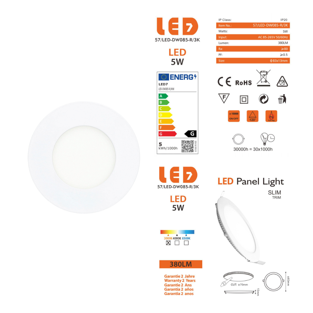 - Potência: 5 watts, proporcionando uma iluminação eficiente com baixo consumo de energia.