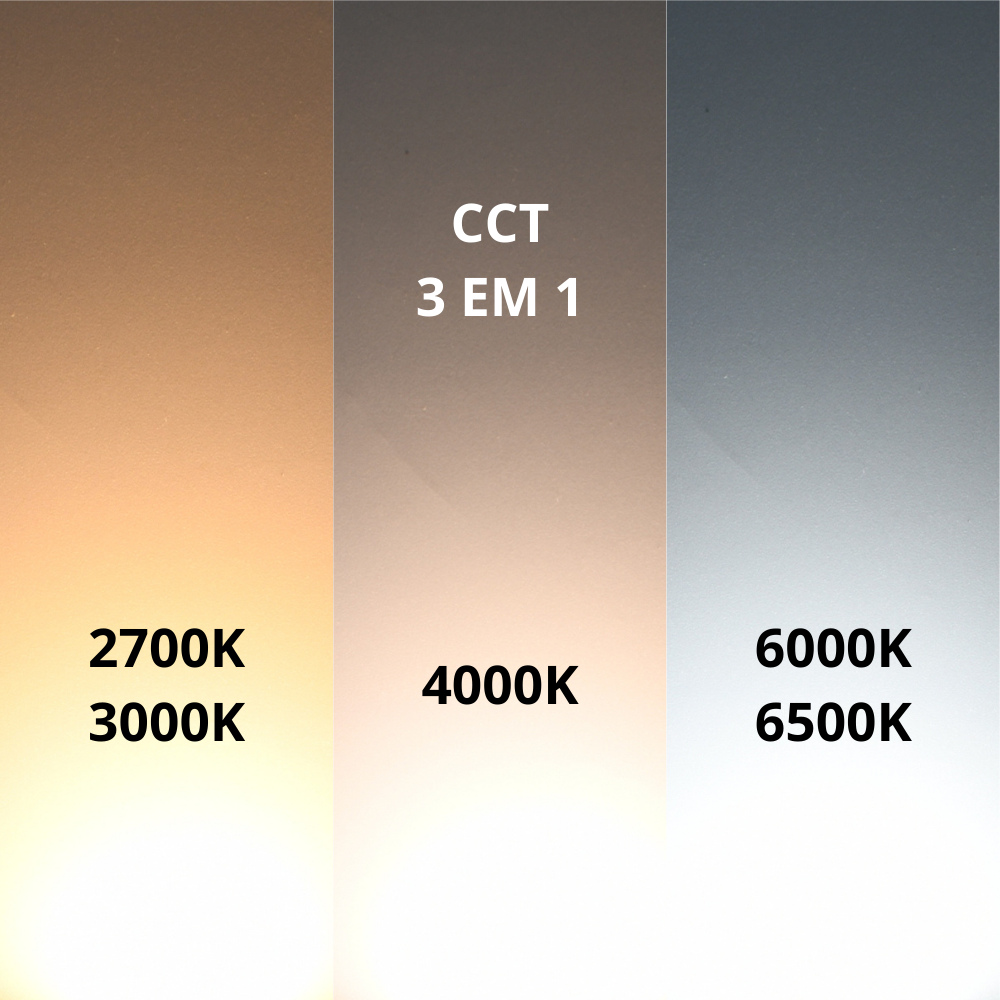 - Fluxo luminoso: 1600 lúmens (CCT)/1700 lúmens (ROSA)