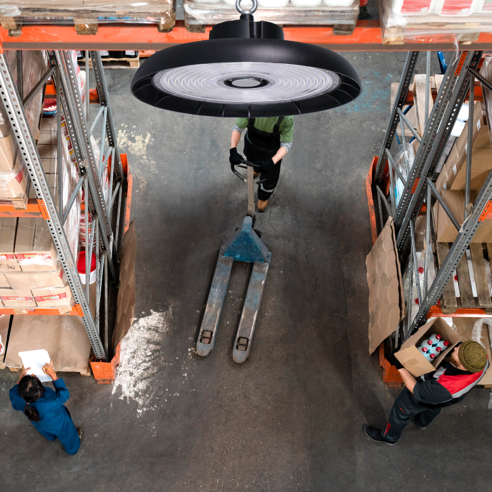 - Uso comum: As campânulas LED são ideais para iluminação de áreas industriais, armazéns, galpões e ambientes amplos, graças à sua eficiência e distribuição uniforme da luz.