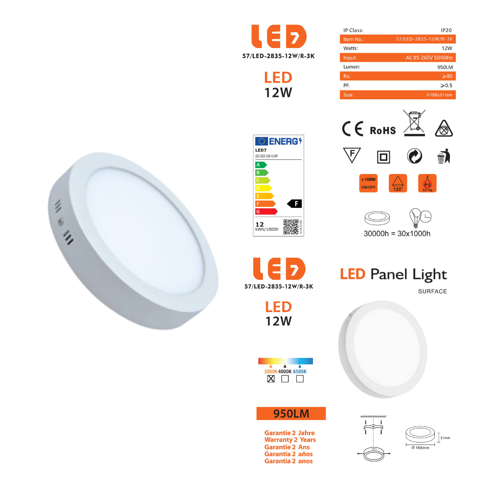 - Potência: 12 watts, fornecendo uma iluminação brilhante e eficiente para o ambiente.